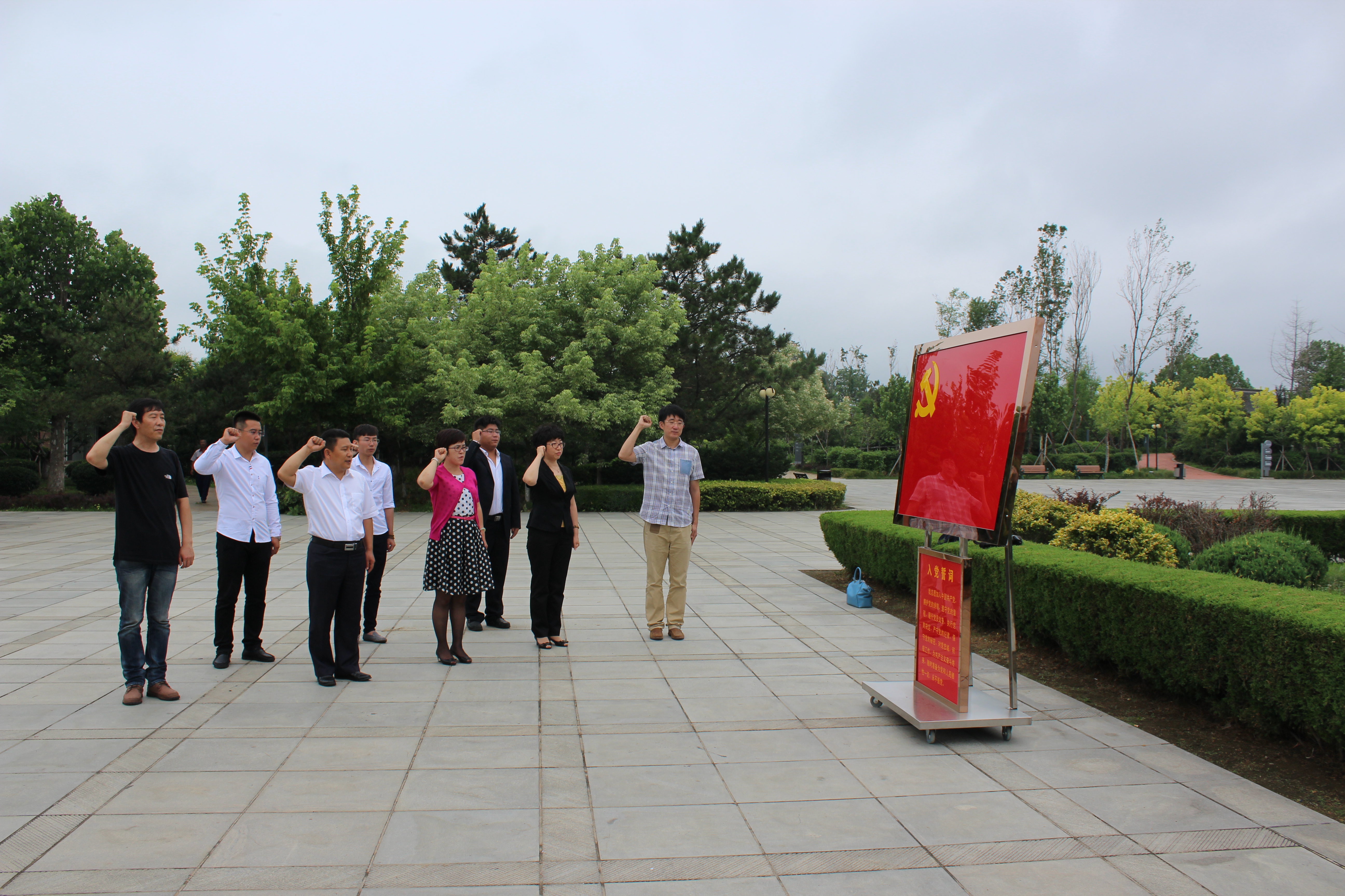 参观后,全体党员在关向应雕像前进行了学党章活动,逐条逐句诵读党章;并面向党旗,紧握右手,重温入党誓词,进一步牢记党的宗旨,牢记党员义务和权利,坚定理想信念,提高党性觉悟。