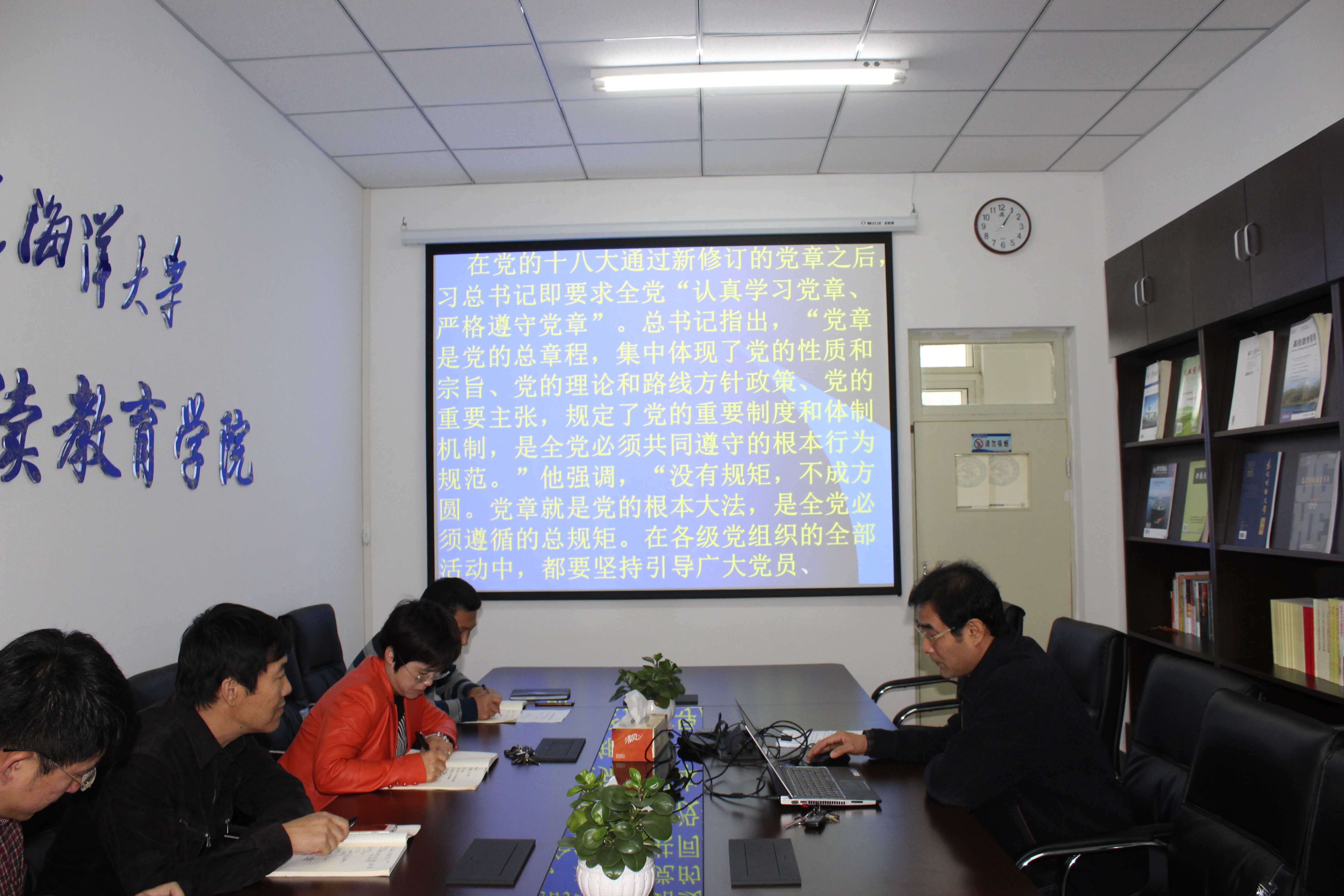 徐洪军回顾了学院开展“两学一做”学习教育的过程,以数字的方式把“两学一做”学习教育的基本知识和党员应知应会基本知识表现出来,并结合理论知识提出提高自身工作能力和水平的具体措施;高音围绕学习党章与大家谈了几点体会,要加深对党章修正内容的学习和解读,通过学党章、强党性,争做一名符合党章要求的共产党员。