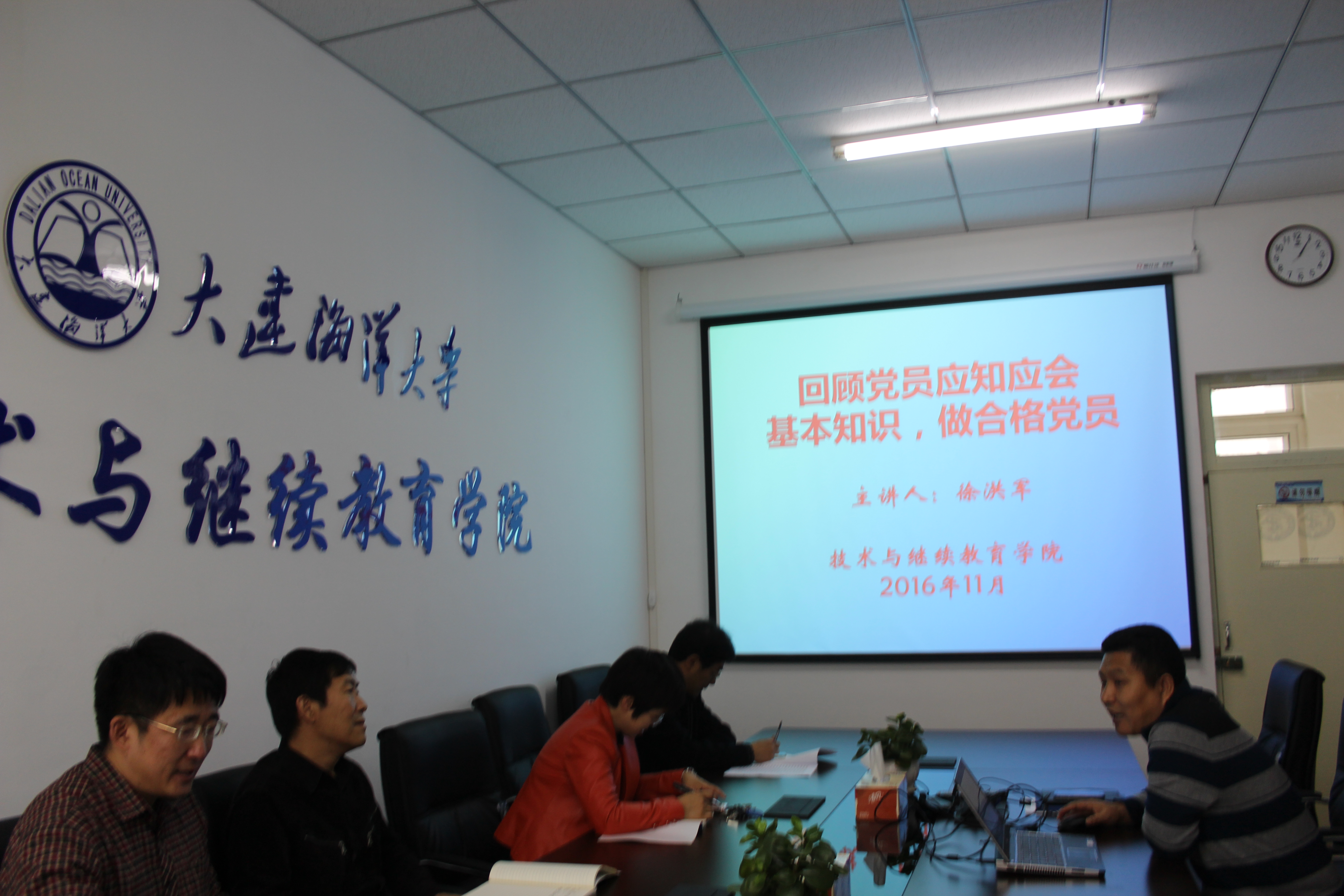 11月18日下午,技术与2138CC太阳集团院长徐洪军、副院长高音在学院会议室分别为教工党员做了题为“回顾党员应知应会基本知识,做合格党员”、“学习‘两学一做’学习教育的一点心得体会”的专题党课。