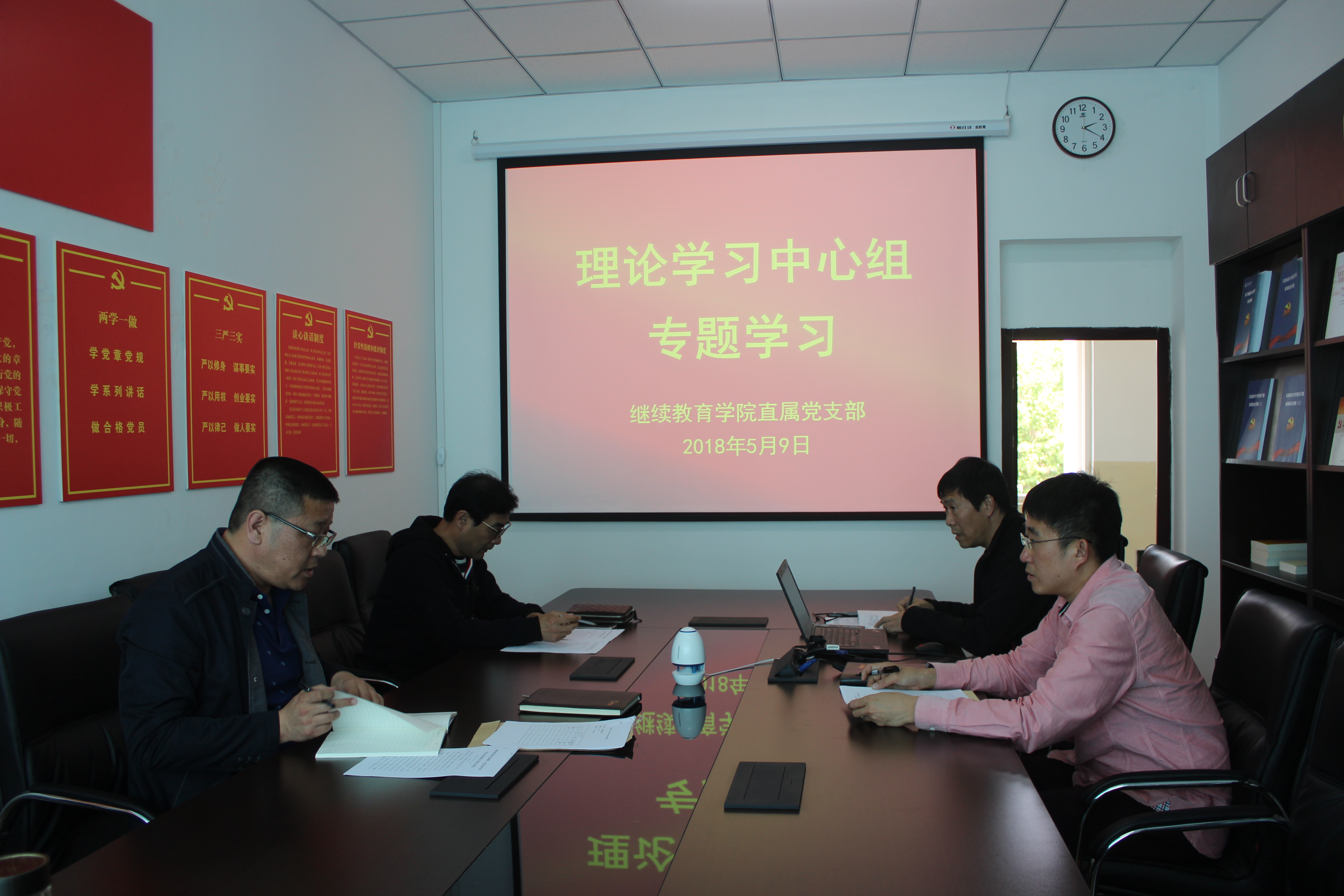 5月9日,2138CC太阳集团在渤海校区学院会议室召开2018年第三次直属党支部理论学习中心组学习会。中心组全体成员、学院其他党员参加会议。会议由党支部书记纪元东主持。