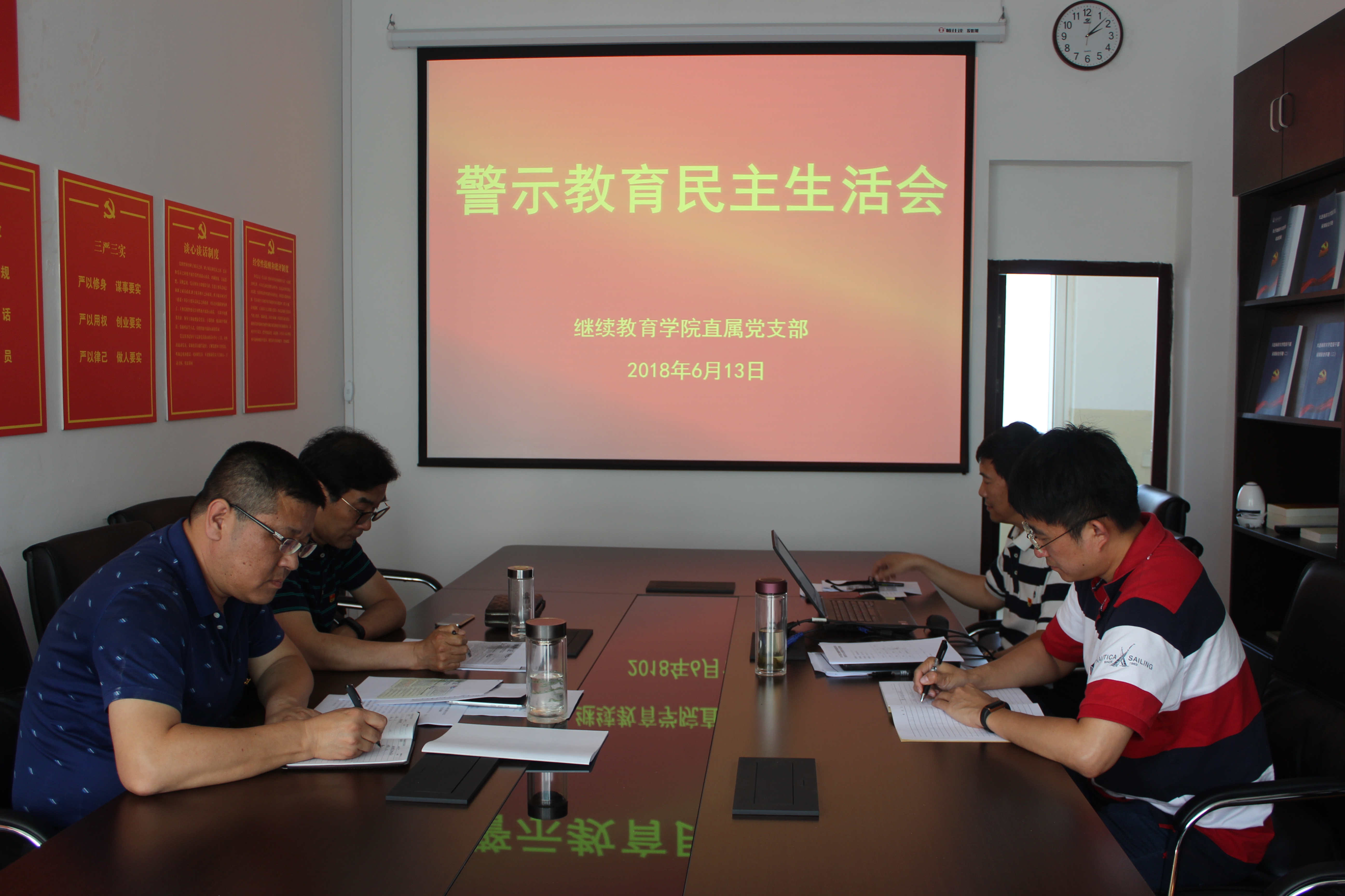 6月13日下午,2138CC太阳集团直属党支部在学院渤海校区会议室召开政治性警示教育专题民主生活会。学院领导班子成员参加会议,其他党员列席会议,会议由党支部书记纪元东主持。