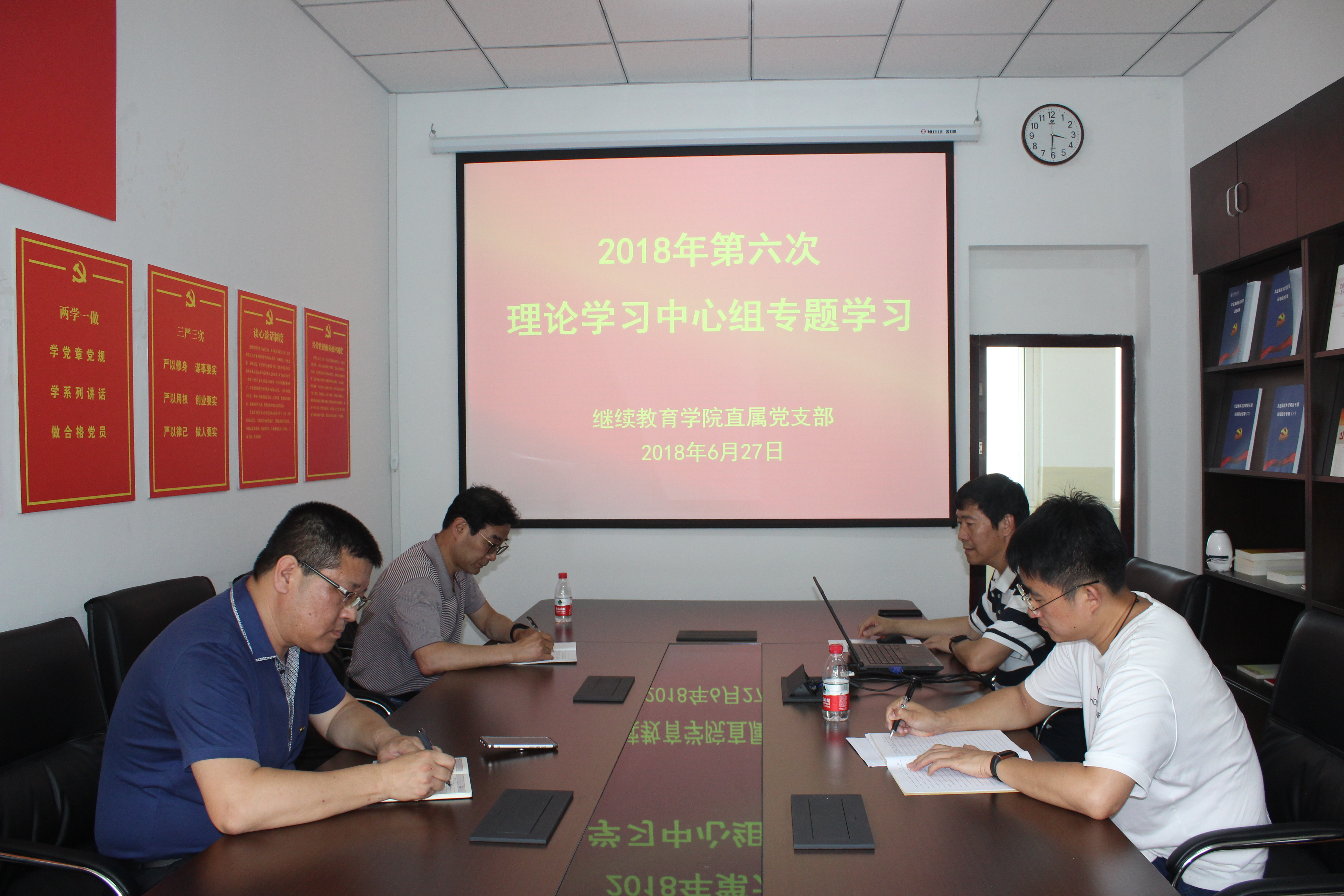 6月27日,2138CC太阳集团直属党支部在渤海校区学院会议室召开2018年第六次理论学习中心组学习会议。理论学习中心组成员、学院全体党员参加会议。会议由直属党支部书记纪元东主持。
