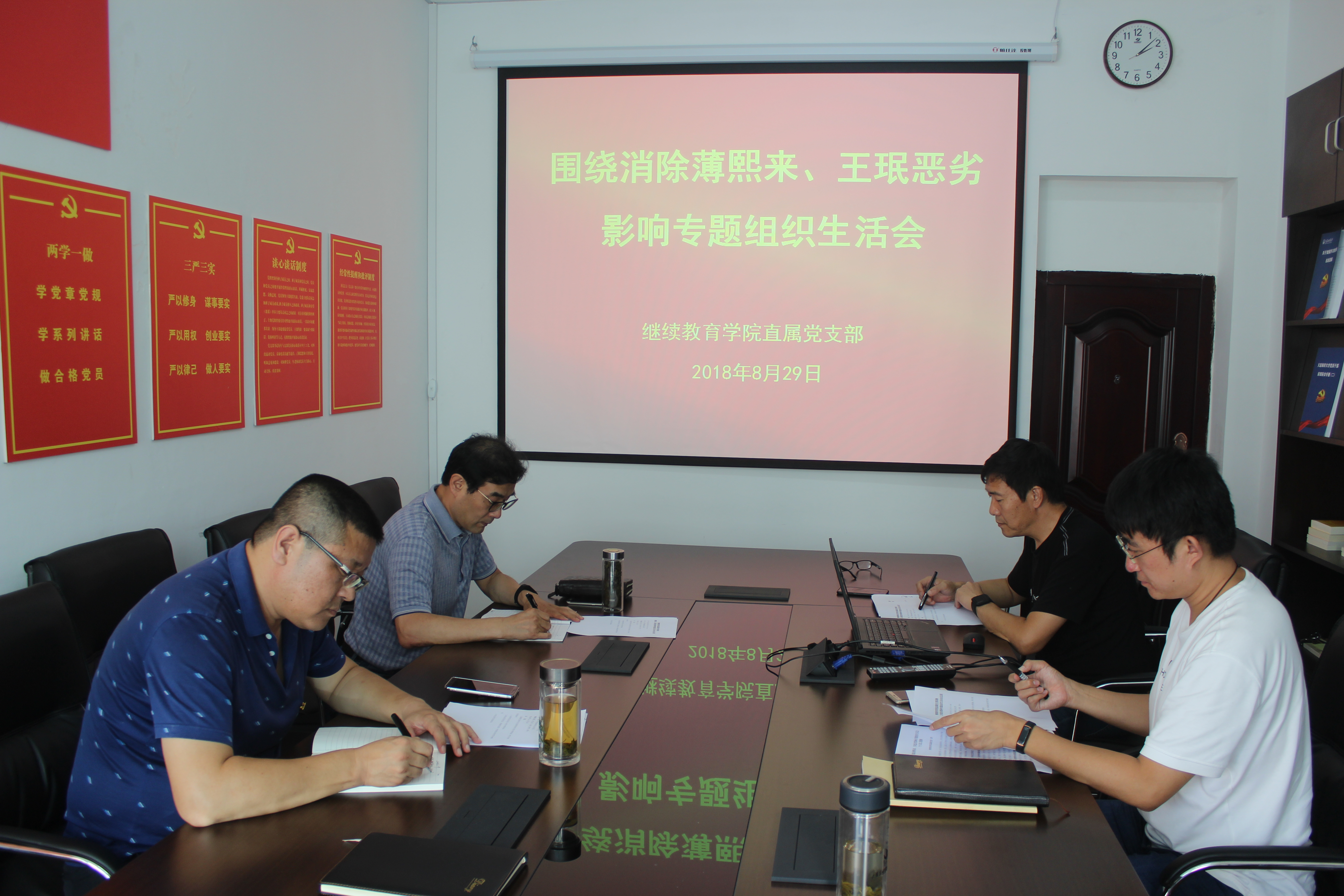 会上,党支部书记结合薄熙来、王珉违法违纪案例,联系工作实际、岗位职责,从对照党章党规党纪,对照中央巡视反馈意见,对照“四讲四有”标准,代表支部班子说明查摆问题情况,集体研究出整改措施,并带头开展批评和自我批评。党支部班子成员联系班子存在的问题,查找不足,进行党性分析,明确整改方向。党支部每名党员也都进行了表态发言,大家表示,要深刻揭批薄熙来、王珉的罪行,为消除恶劣影响、持续推动辽宁政治生态实现根本好转而努力。