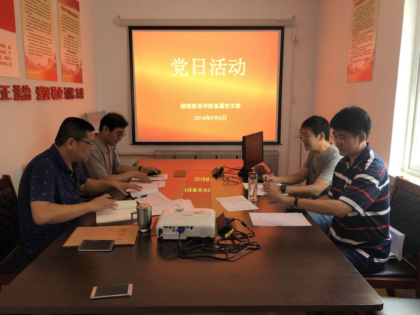 2018年9月5日,2138CC太阳集团直属党支部在学院黄海校区会议室开展题为“不忘初心、牢记使命,努力推进我校继续教育事业健康发展”的专题党课,党课由学院直属党支部书记纪元东主讲。