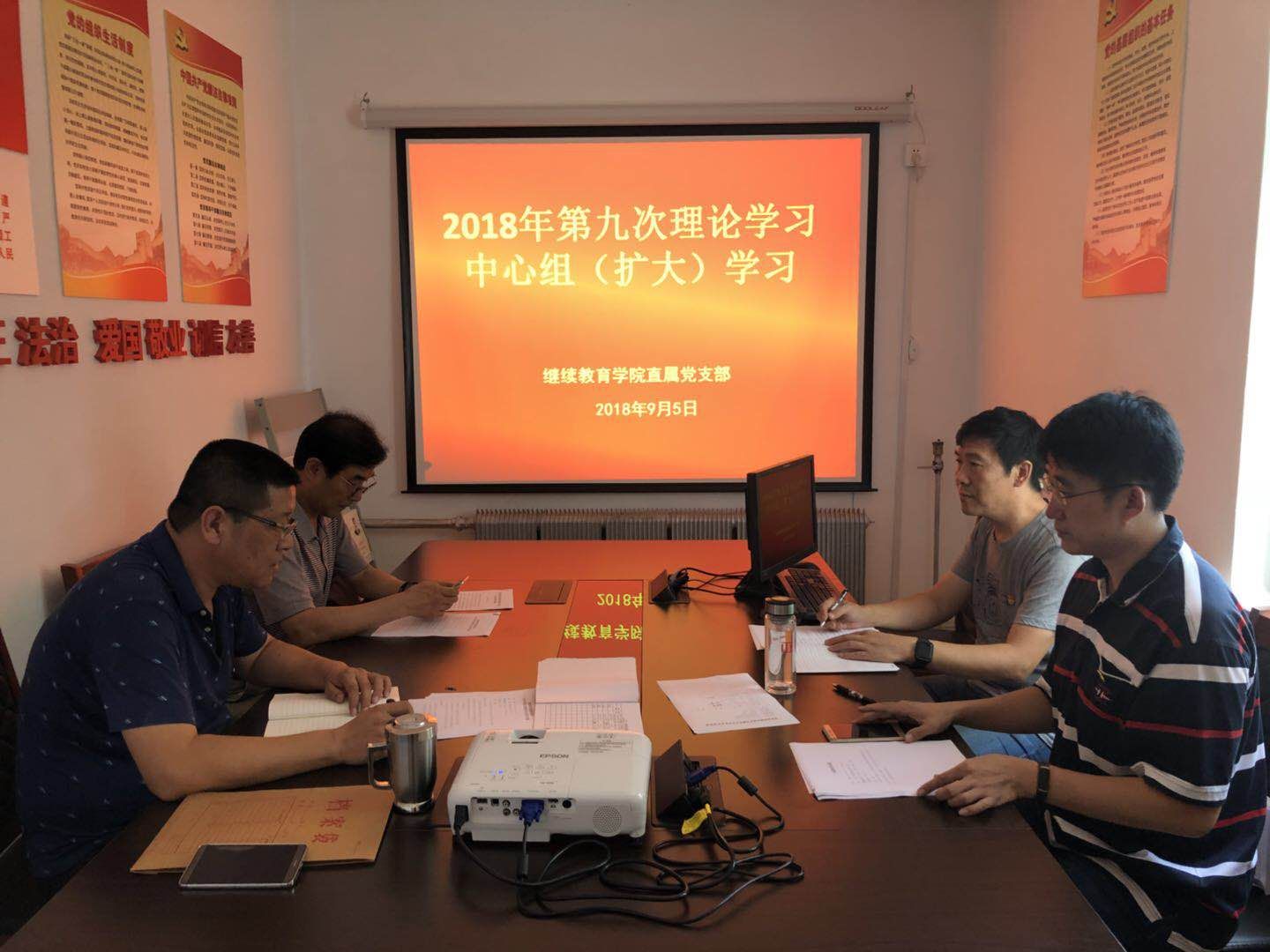 9月5日,2138CC太阳集团直属党支部在渤海校区学院会议室召开2018年第九次理论学习中心组学习会议。理论学习中心组成员、学院全体党员参加会议。会议由直属党支部书记纪元东主持。