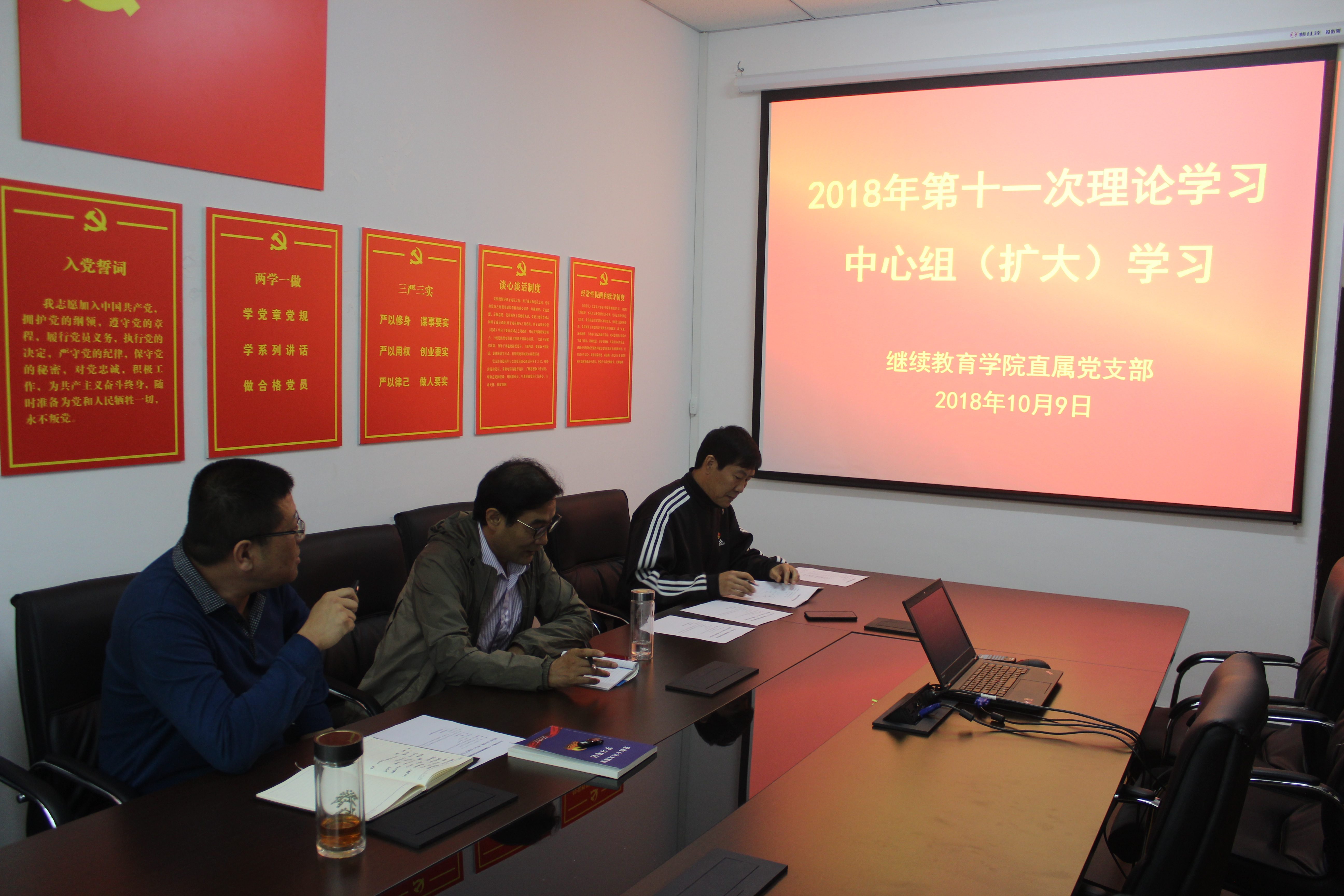 10月9日,2138CC太阳集团直属党支部在渤海校区学院会议室召开2018年第十一次理论学习中心组(扩大)专题学习会议。学院理论学习中心组全体成员、组织员参加了会议。会议由直属党支部书记纪元东主持。