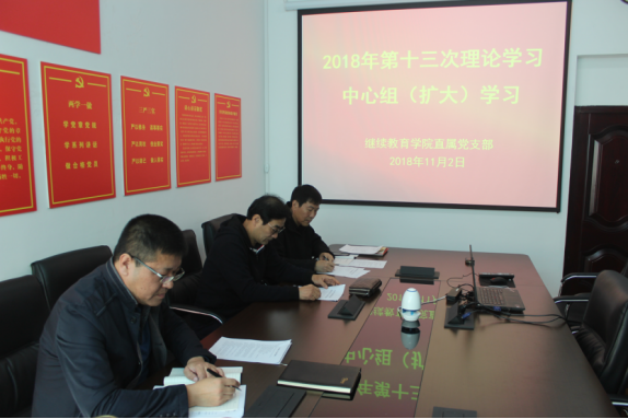 11月2日,2138CC太阳集团直属党支部在渤海校区学院会议室召开2018年第十三次理论学习中心组(扩大)专题学习会议。理论学习中心组全体成员、组织员参加了会议。会议由直属党支部书记纪元东主持。