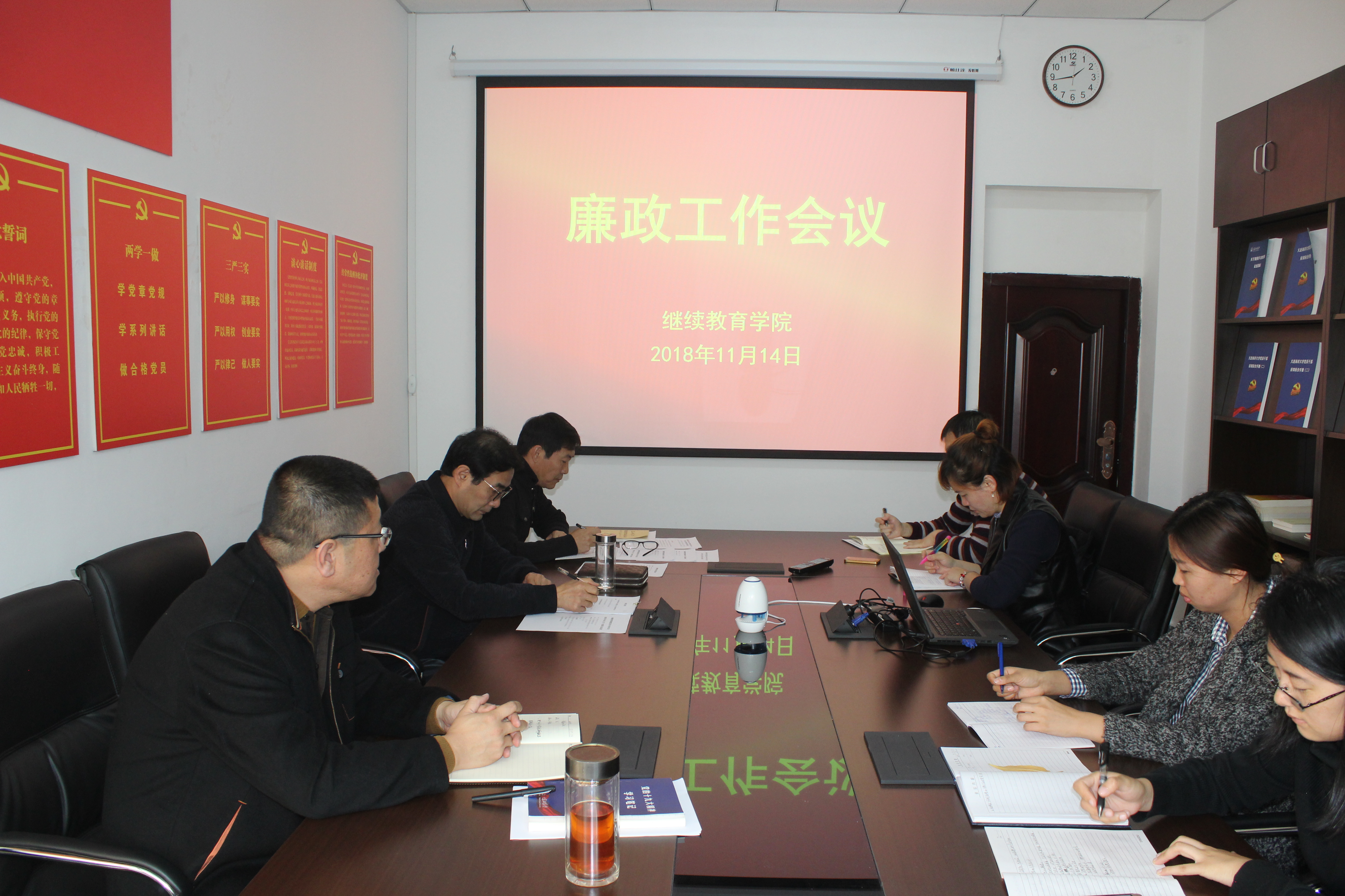 11月14日,2138CC太阳集团在渤海校区学院会议室召开廉政工作会议,全体教职工参加了会议,会议由院长纪元东主持。
