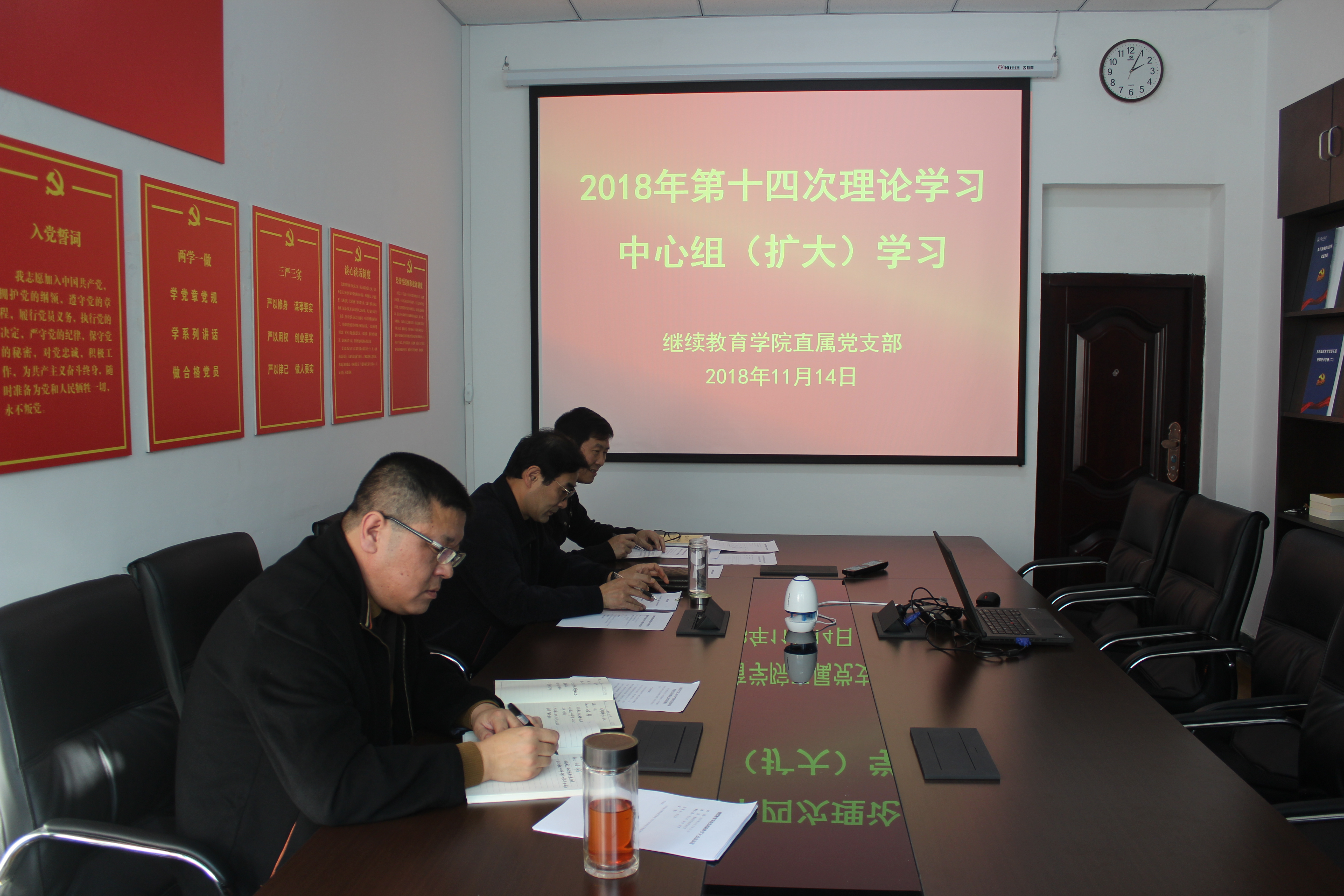 10月14日,2138CC太阳集团直属党支部在渤海校区学院党员活动室召开2018年第十四次理论学习中心组(扩大)专题学习会议。理论学习中心组全体成员、组织员参加了会议。会议由直属党支部书记纪元东主持。