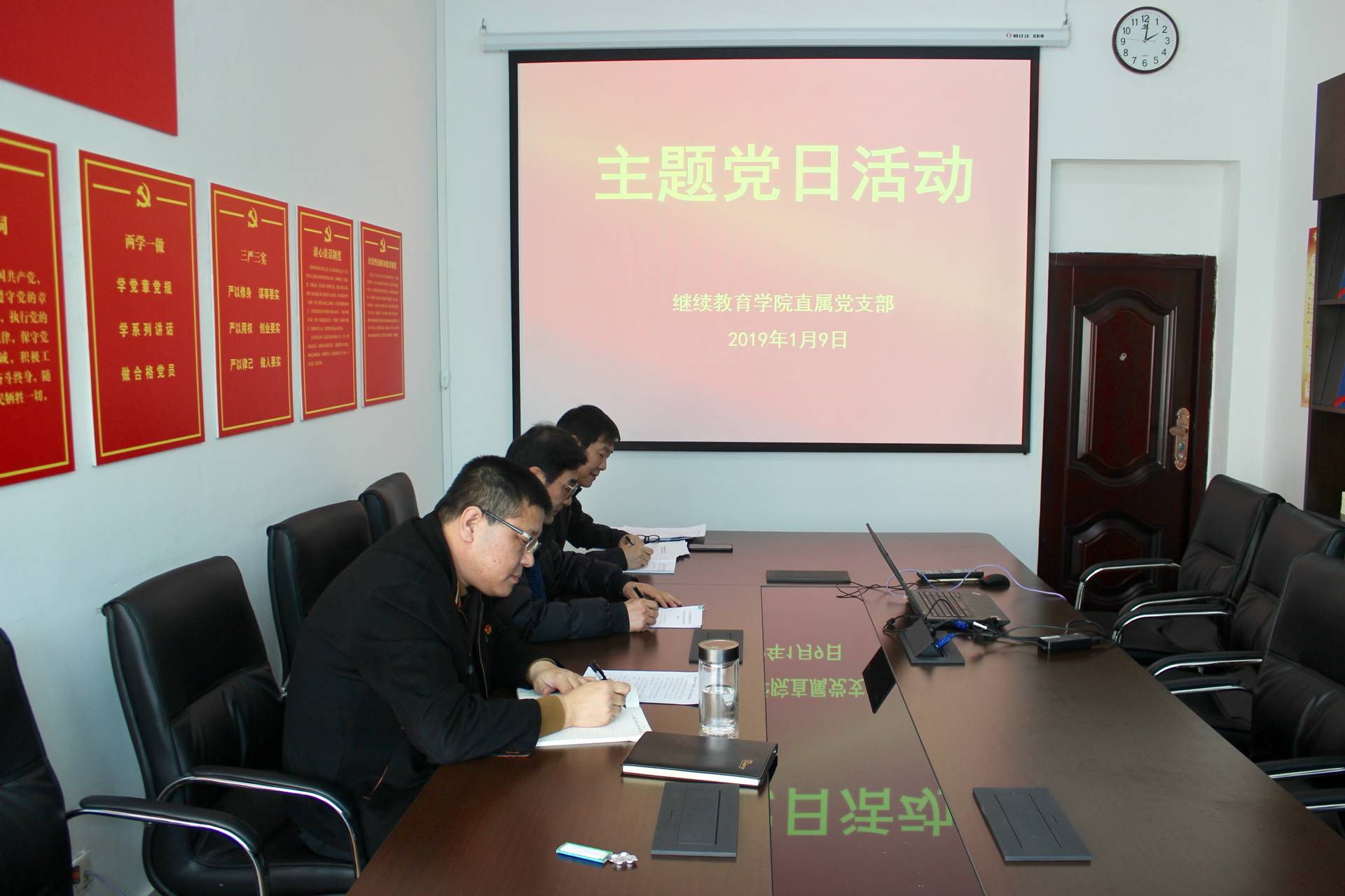 1月9日,2138CC太阳集团直属党支部在渤海校区学院党员活动室举办主题党日活动,学院全体党员参加,主题党日活动由直属党支部书记纪元东主持。