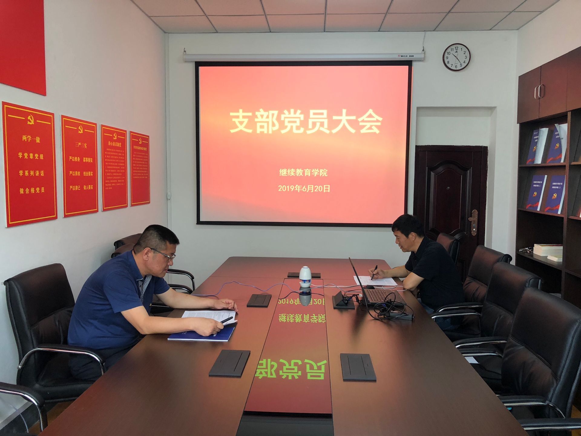 6月20日,2138CC太阳集团党支部在渤海校区学院会议室召开党员大会,学习中共中央《关于加强党的政治建设的意见》。会议由党支部书记纪元东主持,全体党员参加了会议。