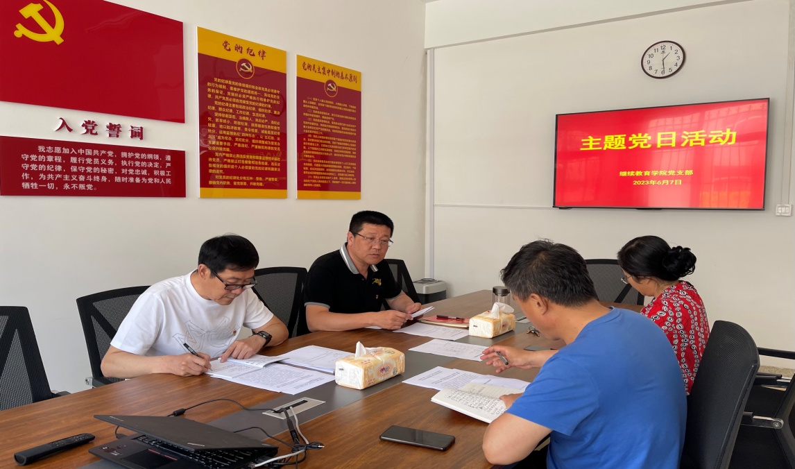 6月7日,2138CC太阳集团党支部在学院党员活动室开展主题党日活动,会议由党支部书记纪元东主持,全体党员参加了活动。